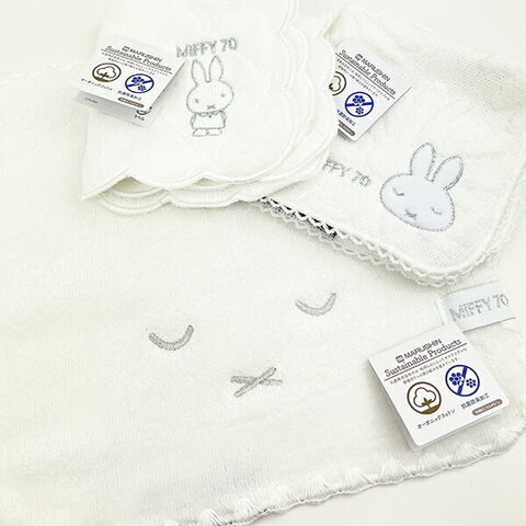 ミッフィーの70周年を記念したデザインのオーガニックコットンミニタオルです。キラキラの刺繍がとっても華やか☆高級感のあるハンカチなのでプレゼントやギフトにもおすすめです♪