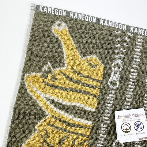 カネゴンが大胆にデザインされたミニタオル。抗菌防臭加工なのでイヤな臭いや菌の増殖を防ぎます。オーガニックコットン使用で人にも環境にも優しいタオルです♪