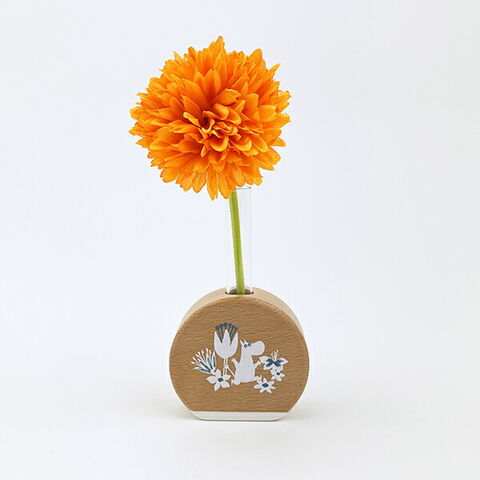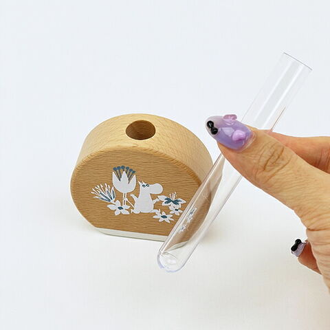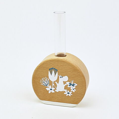 ムーミンのアートが映えるビーチ材の柔らかな質感が心地よい手のひらサイズの一輪挿しです。コンパクトなサイズなので、デスクや窓脇、玄関先場所を問わずに使用可能◎優しい風合いのアイテムなのでどんな方でも使いやすくておすすめです♪