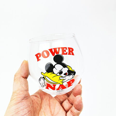 ディズニー(ミッキーマウス)のまんまるグラスです。寝ているデザインとロゴがおしゃれ☆コロンっとしたフォルムがとってもキュートなのでプレゼントなどにもおすすめです♪