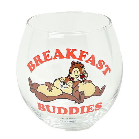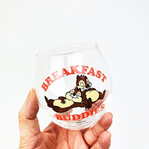 ディズニー(チップとデール)のまんまるグラスです。寝ているデザインとロゴがおしゃれ☆コロンっとしたフォルムがとってもキュートなのでプレゼントなどにもおすすめです♪