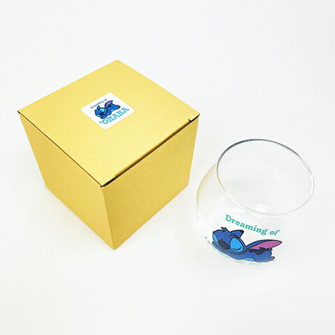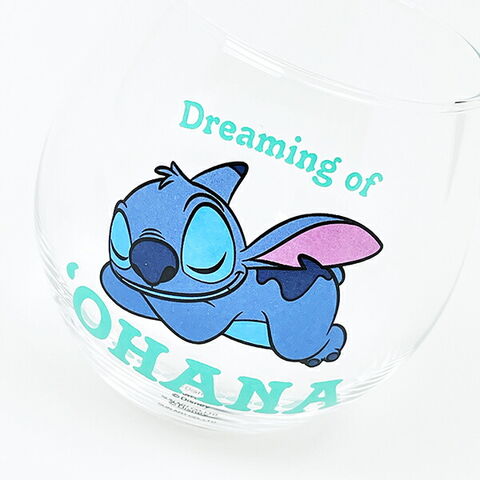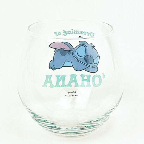 ディズニー(スティッチ)のまんまるグラスです。寝ているデザインとロゴがおしゃれ☆コロンっとしたフォルムがとってもキュートなのでプレゼントなどにもおすすめです♪