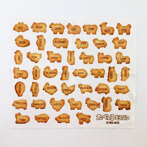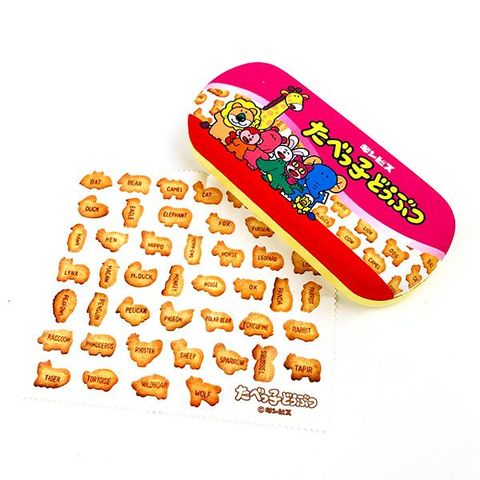 大人気のお菓子「たべっ子どうぶつ」のパッケージを再現!かわいい仲間たち集合です。付属のメガネクロスはビスケット全種の総柄です♪◆サイズ:7cm×15.5cm×4cm