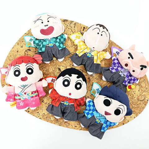 クレヨンしんちゃん達が着物を着ている和風なシリーズ☆和の要素ふんだんの刺繍チャーム付きです。キーリング付きなのでカバンなどに付けて一緒に持ち運べます!