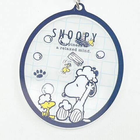 スヌーピーのシャカシャカ中が動くかわいいいキーホルダーです♪バスタイムデザインで中の泡やウッドストックがとってもキュート♪バッグなどにつけて一緒にお出かけしてみてください☆!