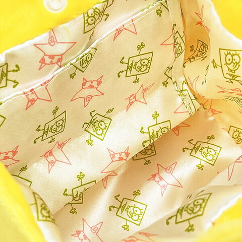 スポンジボブのフェイスデザインが存在感バツグンのトライアングルバッグ。ふわふわな生地&中布もかわいいパターン柄でこだわりいっぱいのアイテムです!