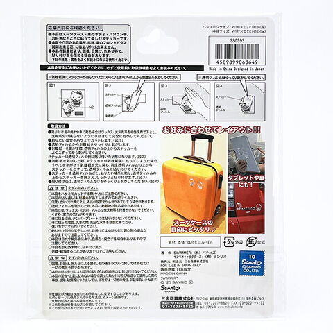 SWIMMER×サンリオコラボのステッカー!好きな場所を簡単デコ♪お好みに合わせてレイアウト!耐熱・耐水タイプなのでタブレットや車にも◎スーツケースの目印にもぴったり!!使い方は自由自在~♪【パッケージサイズ】W140×D2×H180mm【本体サイズ】W119×D1×H140mm