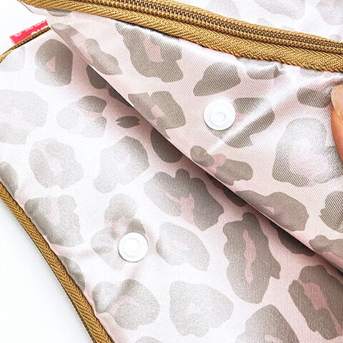 ハローキティのペットボトルや折り畳み傘が入る大きめサイズのどっとポーチです。内側はタオル生地で、傘やペットボトルなどに付いた水滴も吸収してくれます!ヘアアイロンなどの少し大きなアイテムを入れられるので旅行や遠征にもおすすめ♪内側にあるミニポケットは、ポーチの中で見失いがちなヘアクリップやピアスなどの小さなアクセサリーや小物を収納するのに便利です☆ストラップ部分はスナップボタン式なので簡単にキャリーバッグやバッグに取り付けることができちゃいます♪裏面のスナップボタンを留めることでコンパクトにできるので、使わないときはかさばらずにしまっておけるので、ぜひ普段お使いのバッグの中に入れて持ち歩いてください☆彡
