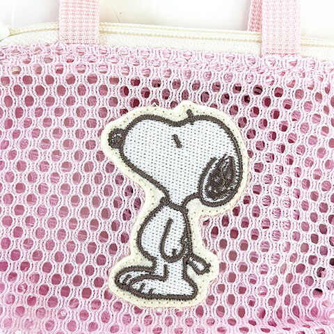 『スヌーピー』のバッグ型のミニポーチです。ボールチェーンでカバンに付ければお気に入りの小物を可愛く持ち運べます。ハンドジェルやリップ等の小物を入れるのに便利!。透け感がオシャレなメッシュ生地に刺繍された、大人っぽく可愛らしいデザイン♪