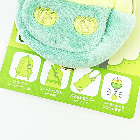 ちょっとした時に必要になる小銭・小物を入れてマルチに巻き付けられるけろけろけろっぴのポーチです♪リュックのショルダー部分に付ければ、リュックを降ろさずに小物を取ることができてとっても便利!他にもシートベルトに付けて小銭を取りだしやすくしたり、スマホショルダーに付けてリップ等の小物を取り出しやすくしたりと様々なシーンで活躍します◎ポーチ下部には金具が付いているため、お気に入りのキーホルダーを付けられます。ベルトの向きはお好みで調整可能。まるっとしたフォルムのけろけろけろっぴのダイカットデザインがマスコットとしても◎
