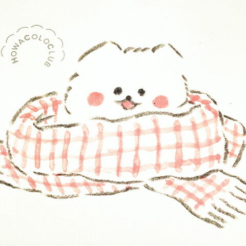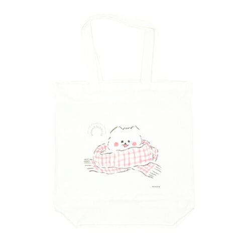 白い生地に赤いマフラーのほわころちゃんがカワイイ!!A4サイズが入る使いやすい大きさです。