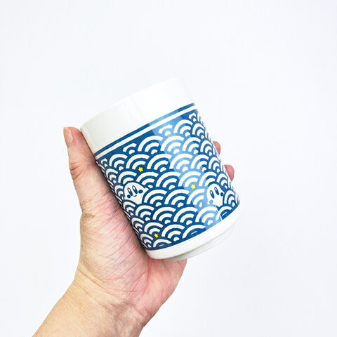 伝統的な「青海波柄」に、カービィ・ワドルディ・メタナイト・デデデ大王・マキシムトマトが自然にとけこんだ、さり気ないデザインが粋な湯飲みです。※食洗機、乾燥機にてご使用の際は他の食器との重なりや温度にご注意の上ご使用ください。