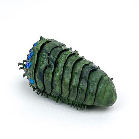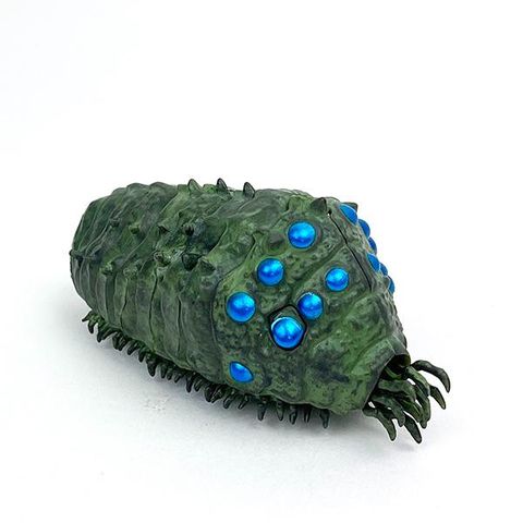 映画「風の谷のナウシカ」に登場する王蟲が装甲をウネウネと動かしながら走ります。「王蟲/穏やかな碧(あお)」は落ち着いておとなしい様子を再現してゆっくり進みます!それぞれ走るスピードを変えて作品中のイメージを再現しています。たくさん集めて走らせれば、あのシーンも再現できる?!