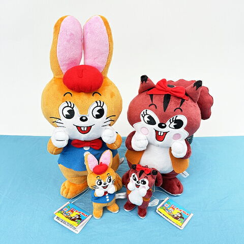 ウサギとリスのキャラクターでおなじみ、クッピーラムネのキャラクターのぬいぐるみマスコットです☆後ろ姿までしっかり再現しており、まるでパッケージから飛び出してきたかのようにカワイイ♪バッグにもアクセントにも可愛い♪ボールチェーン…全長(約)140mm