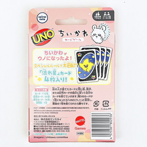 子供から大人まで、みんなで楽しめるカードゲーム『ウノ』がちいかわになりました。オリジナルのスペシャルルールカードを4枚収録し、一味変わった、より一層楽しめる特別なウノです。