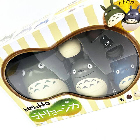 トトロの人形を開けると、中からまたトトロが…というように、次々と現れて、最後にマックロクロスケが現れるまで、6段階の入れ子になっています。マトリョーシカ遊びを楽しむ他にも、並べて飾ったり、各々を小物入れとして使用したり、楽しみ方は色々です。緑色の大トトロに全て収るよ。セット内容:大トトロ(グリーン)…1個、大トトロ(グレー)…1個、中トトロ …1個小トトロ …1個、どんぐり …1個、マックロクロスケ …1個品サイズ:H(約)160mm(大トトロ/グリーン)~(約)22mm(マックロクロスケ)