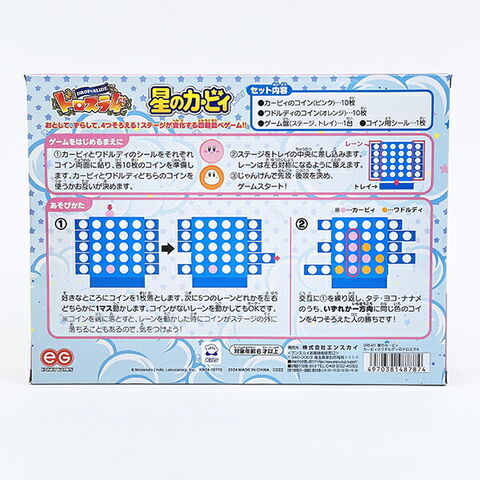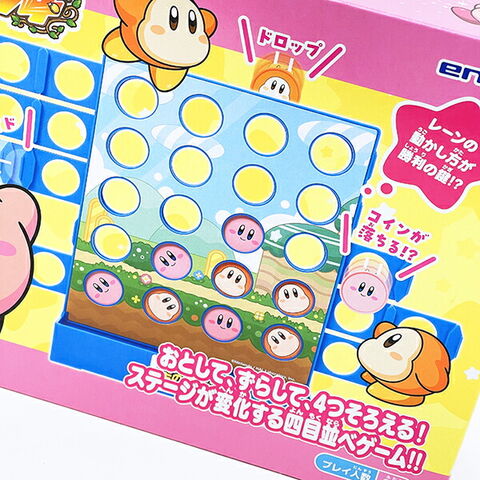 コインを落とし、レーンを左右どちらかに1マス動かします。これを交互に行い、先にコインをタテ・ヨコ・ナナメのいずれかに直線状に4つ繋げた人の勝ちとなるパズルゲームです!左右にコロコロ回転するカービィも可愛い♪