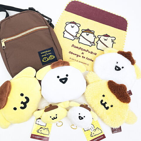癒し系人気キャラクターの「ポムポムプリン」と「お文具といっしょ」がコラボ♪下の金具を引っ張るとリールが伸びるリール付きマスコットはかわいくて便利なアイテムです♪