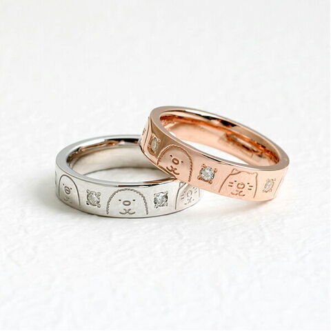 しろくま・ぺんぎん?・とんかつ・ねこ・とかげの順にぎゅっと固まったすみっコたちのシンプルなリングです。十分な厚みを持ったデザインで高級感も漂います☆さりげなく大人が身につけたいシルバージュエリーコレクション☆箱付きなのでプレゼントにもおすすめです♪【サイズ:最大幅 約4.9mm】