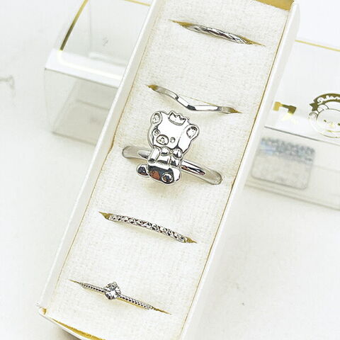 リラックマの「リラノワ」ジュエリーリングセットです。シンプルで使いやすいデザイン☆セットなのでお好きな組み合わせで付けられて◎専用のケース付きなのでプレゼントにもおすすめです♪【サイズ:5号~13号】