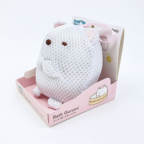メッシュ素材で泡立ち抜群!ボディスポンジとしてもご使用できるお風呂で遊べるすみっコぐらし(しろくま)のぬいぐるみです。錆びないプラ製の鈴が入っているので、身体を洗う度に軽やかな鈴音が鳴りお子様も喜ぶこと間違いなし!ぜひしろくまと一緒にお風呂時間をもっと楽しくしましょう♪