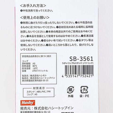 素材:スタンド:ABS、PVC、TPR、コップ:AS