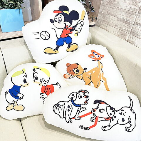 レトロなディズニーキャラクターのイラストがカワイイクッションです。ダイカットなのでそれぞれ形が違ってオシャレ♪