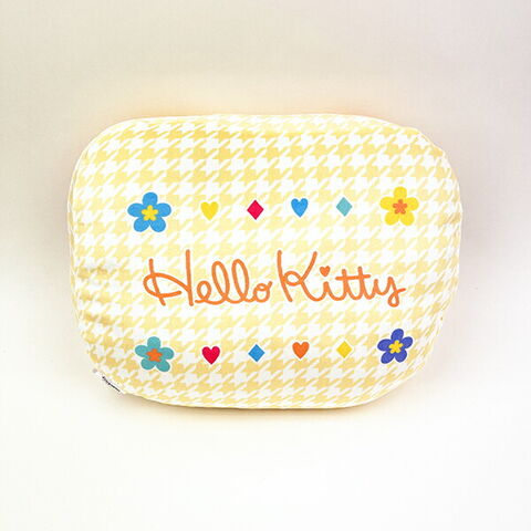 カオハナキティのレトロかわいいクッションです☆お花と千鳥格子デザインがレトロ可愛いデザイン☆背当てクッションにもぴったりとなっており、素材感も優しい肌触りで気持ちいい♪♪