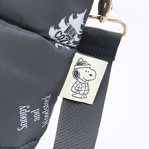 スヌーピーのふわっと軽くて柔らかいダウントートバッグです。冬の装いをしたスヌーピーのデザインがかわいい♪取り外し&長さ調節が可能なショルダーベルトが付いているので、ショルダーバッグとしても使うことができる2WAYなバッグです。