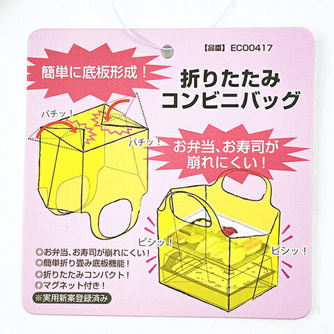 スヌーピーの折りたたみコンビニバッグです。使わない時は折りたたんで小さく収納できます☆底を形成しない場合はマチなしのエコバッグとして使える2Way仕様!マグネットで底を形成すればマチがある状態になって使い勝手◎コンビニのお弁当が安定して真っ直ぐ持てるのが嬉しいポイント♪500mlのペットボトル飲料6本分の重さも耐えられるので、お買い物にぴったりです☆マグネットが付いているので、冷蔵庫などにくっつくので収納も便利で使いやすいです♪【サイズ】収納時:9cm×9cm×3cm、底形成あり:23cm×23cm×14cm、底形成なし:30cm×37cm×2cm【容量:約7.4L】