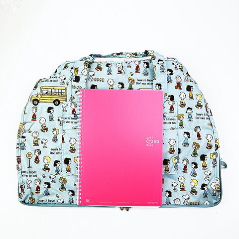 スヌーピーの折りたたみボストンバッグです。使わない時は折りたたんで小さく収納できます☆ファスナーを開けて広げるだけでバッグに早代わり♪スーツケースのキャリーバーに装着することが可能なので旅行などでも大活躍すること間違いなし!持ち運びに便利なショルダーベルト付きも嬉しいポイントです☆【サイズ】収納時:18cm×22cm×4.5cm、使用時:30cm×45cm×18cm、【容量:約23L】
