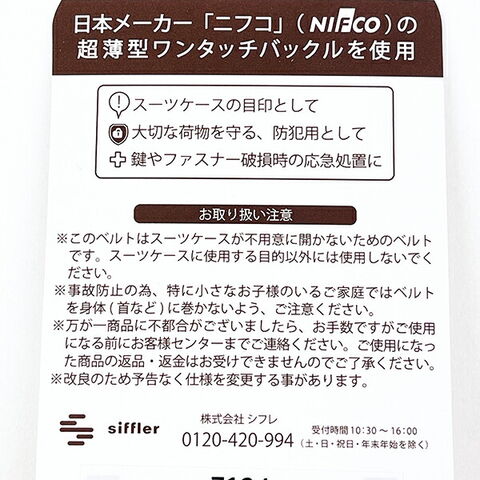 飛行機で預けた荷物がみんな同じような色や形で自分の荷物がわかりにくいことありませんか?そんな時に大活躍するリトルミイのスーツケースベルトです。スーツケースの目印としてはもちろん、スーツケースが気圧等の衝撃で突然開くのを防止したり、万が一旅行中にスーツケースの鍵やファスナーが壊れスーツケースを締められない時の応急処置としても使うことができます☆日本メーカーニフコの超薄型ワンタッチバックルを使用しているので、カチっと着脱簡単!スーツケースに合わせて長さ調節も可能です。可愛らしいデザインにも注目です♪【サイズ:約108-186cm×5cm】