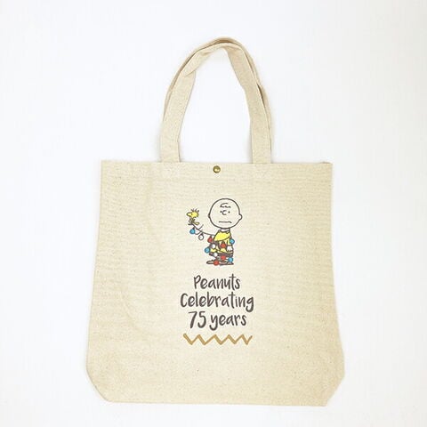 スヌーピー チャーリーブラウン 帆布トートバッグ ナチュラル PEANUTS 75th SNOOPY