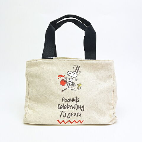スヌーピー サイドボタンミニトートバッグ ナチュラル ランチ PEANUTS 75th SNOOPY