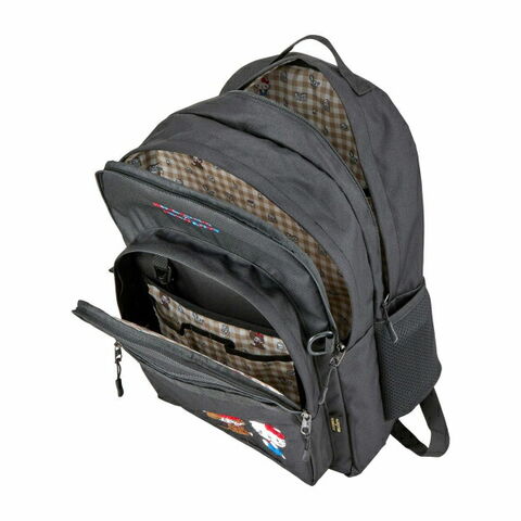 ハローキティ×モンチッチの文字が刺繍されたリュックサックです♪前面にはキーホルダー等を引っ掛けることのできるキーホックがついています♪片側側面にはDカンもついているので、お好きなキーホルダーをつけることができます♪内装もハローキティとモンチッチがプリントされていておしゃれ。可愛いだけでなく機能性も抜群!メイン収納は2ルームに分かれており、荷物を仕分けして収納することが可能◎30Lの大容量で収納力抜群。A4サイズのノートもすっぽり収納できます。ノートPCやタブレットを入れるのに便利なクッションポケットも付き◎サイドには500mlペットボトルを入れられるメッシュサイドポケット付き。背面部分はメッシュ&クッションで背負い心地も快適◎