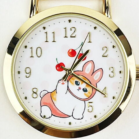 モフサンド 水彩ドットキーチェーンウォッチ うさにゃん 時計 キーホルダー mofusand