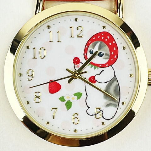 モフサンド 水彩ドットキーチェーンウォッチ いちごにゃん 時計 キーホルダー mofusand