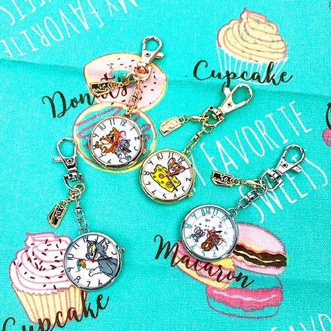 トムとジェリーのナスカン付きでかばんなどに付けることが出来てかわいいホルダーウォッチです。文字盤サイズ:3.5cmΦ 全長サイズ:約11.5cm
