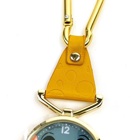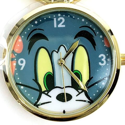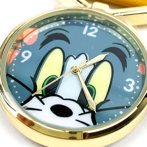 トムとジェリーのカラナビ付きでかばんなどに付けることが出来てかわいいウォッチ、合皮レザーの型押しもオシャレ♪文字盤サイズ:3.5cmΦ 全長サイズ:約11.5cm