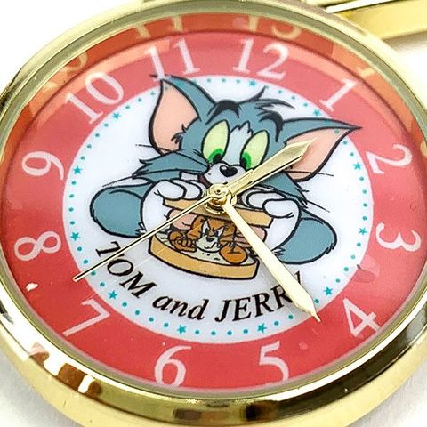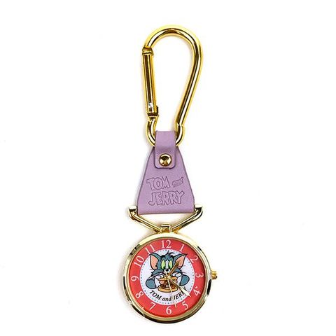 トムとジェリーのカラナビ付きでかばんなどに付けることが出来てかわいいウォッチ、合皮レザーの型押しもオシャレ♪文字盤サイズ:3.5cmΦ 全長サイズ:約11.5cm