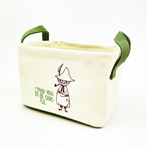 スナフキンの小さめサイズで可愛らしいストレージボックスです。ワイヤー入りでしっかり自立し、使わないときはたたんでコンパクトにもなっちゃいます♪衣類やタオル、おもちゃの収納に活躍すること間違いなし!持ち手つきで、持ち運びにも便利な収納ボックスです☆