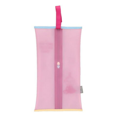 ほんのり透け感がある生地が可愛い、乳白色のミルクカラーシリーズです。スナップ付きのストラップでフックや車のシートのポールにかけられるので、とっても便利!ダブルファスナーで取り出し口の開口部を調節できます◎