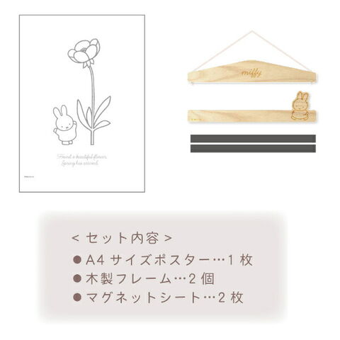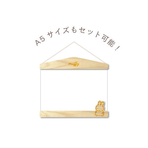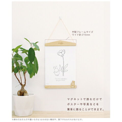ミッフィーのポスターハンガーです。マグネットで挟むだけでポスターや写真を簡単に飾ることができちゃいます♪壁に直接貼らないので、模様替えもしやすいのが◎A5サイズもセット可能!ナチュラルな木のハンガーなのでどんなインテリアにもなじみやすいのが嬉しいポイントです☆ぜひすきな場所に飾ってみてください♪【セット内容:A4サイズポスター×1、木製フレーム×2、マグネットシート×2】