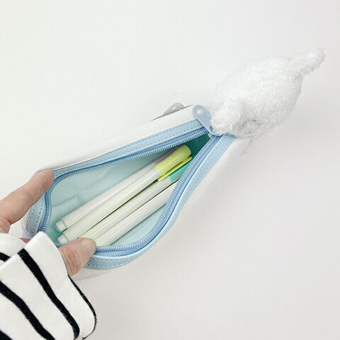 ぬいぐるみがペンケースにギュッとついているデザインです。学校オフィス、お家でもずっと一緒に♪ボックス型なので収納もしやすい!
