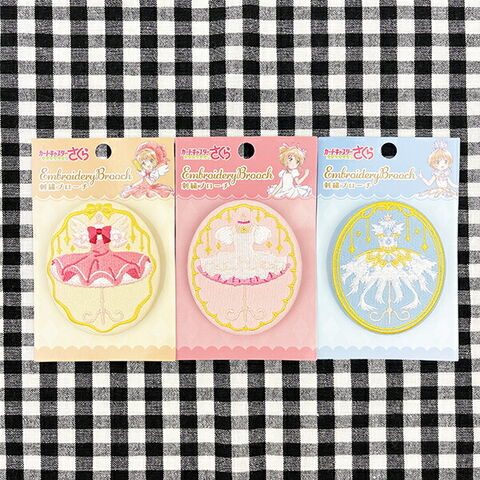 カードキャプターさくらのクリアカード編の刺?ブローチです。かわいい衣装の刺繍がとてもキュート♪カードキャプターさくら好きにはたまりません!ぜひお好きな衣装のブローチをバッグなどに付けてお出かけしてみてください☆