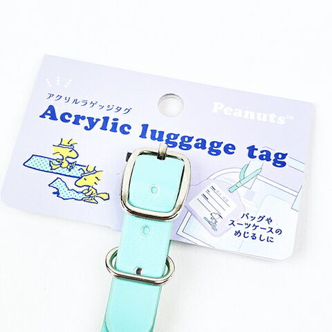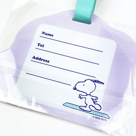 パープルカラーがかわいいアクリルラゲッジタグです。バッグやスーツケースの目印に◎かわいいスヌーピーと楽しい旅行を♪