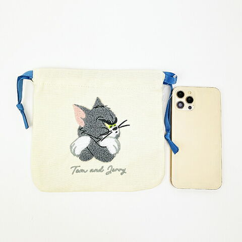 トムとジェリー トム サガラ刺繍巾着ポーチ