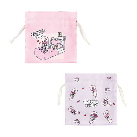 エスターバニーの可愛いリボンフラット巾着です。メイク用品や小物を入れるのにぴったり☆ポーチとしても使えるサテンリボンの巾着♪エスターバニーらしい可愛いデザインにも注目です☆彡