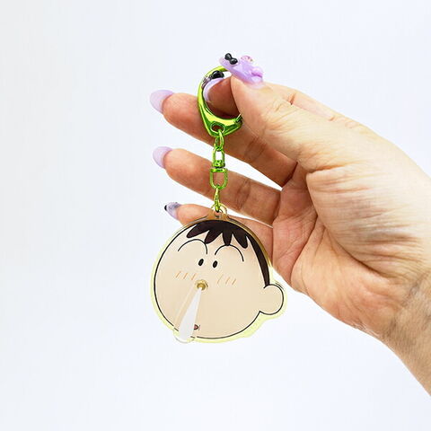 クレヨンしんちゃんの友達、ボーちゃんのキーホルダーです♪いつも鼻水を垂らしているボーちゃんの鼻水がぐるぐる回転する♪バッグに付けて、みんなに自慢しよう☆彡