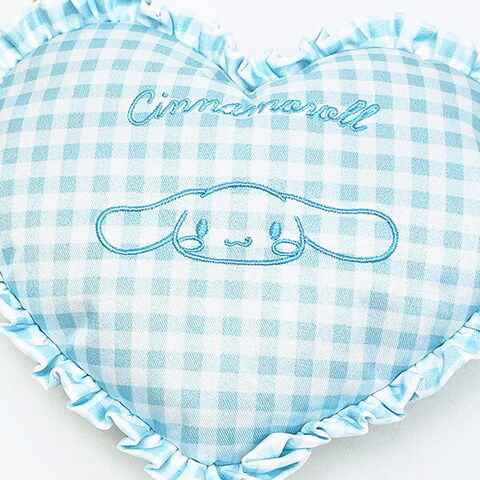 サンリオキャラクターズのハート型クッションポーチになります。 ギンガムチェックのデザインが可愛さ増し増し♪ ポーチになっていて、小さな指輪やリップなど収納もしていただけます☆彡